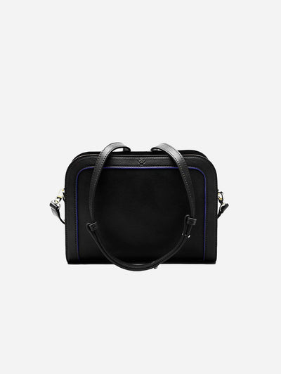 The exterior of the bag has an accent of colour with contrasting cobalt blue edge dye on the framed panel. Inside there is a zipped pocket.