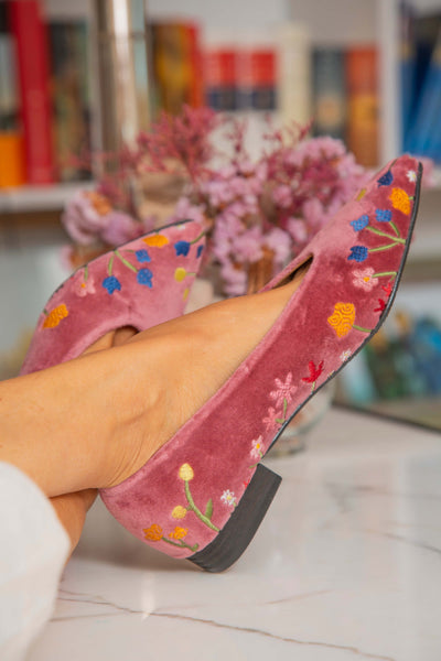 This is a spectacular design where pictures are worth more than words. Delight your feet with this beautiful garden embroidered on pink velvet . Designed by Elena Fabregas, read the beautiful story of this ballerina below in the description.