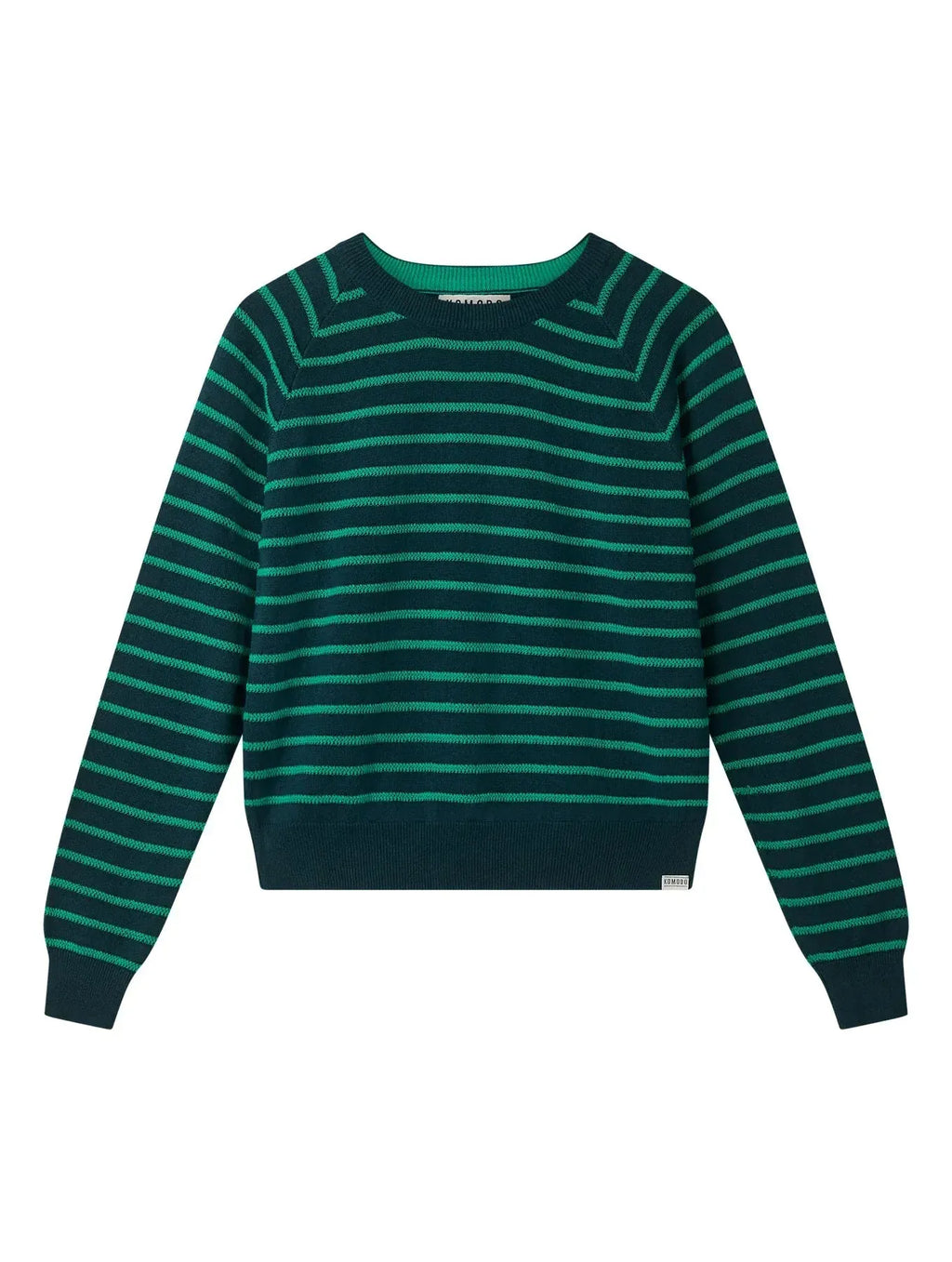 The ALMA - the perfect Autumn layer. Made from 100% Organic cotton yarn and available in two colours - classic Green & Teal stripe, the ALMA is also vegan and environmentally friendly. Made from 100% Organic cotton.