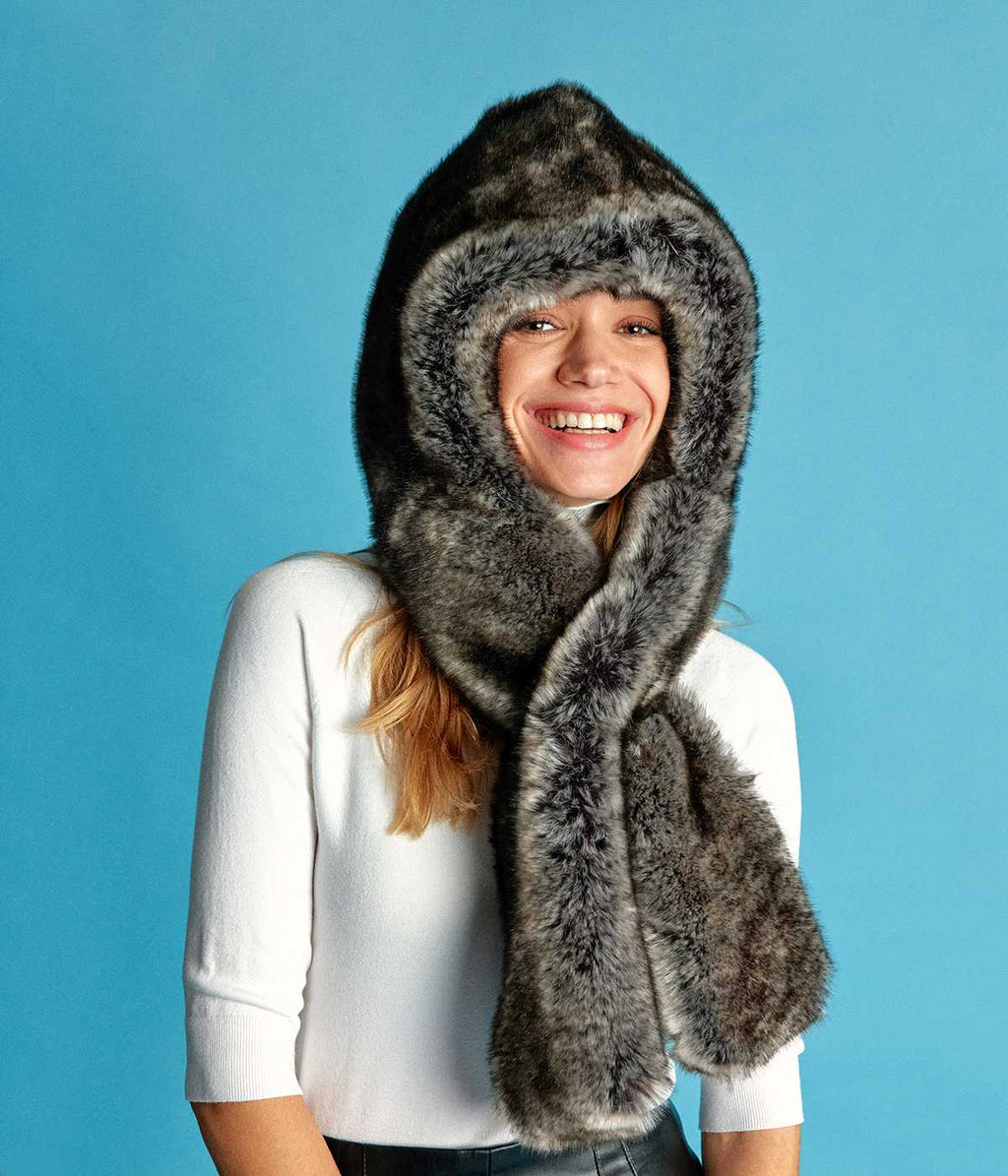Be ready for winter with Suzan, the hooded scarf made from faux fur. Soft and warm, it offers ideal protection for the head, ears and neck. The hood is extended by 2 rectangular sections which can be adjusted according to your wishes.