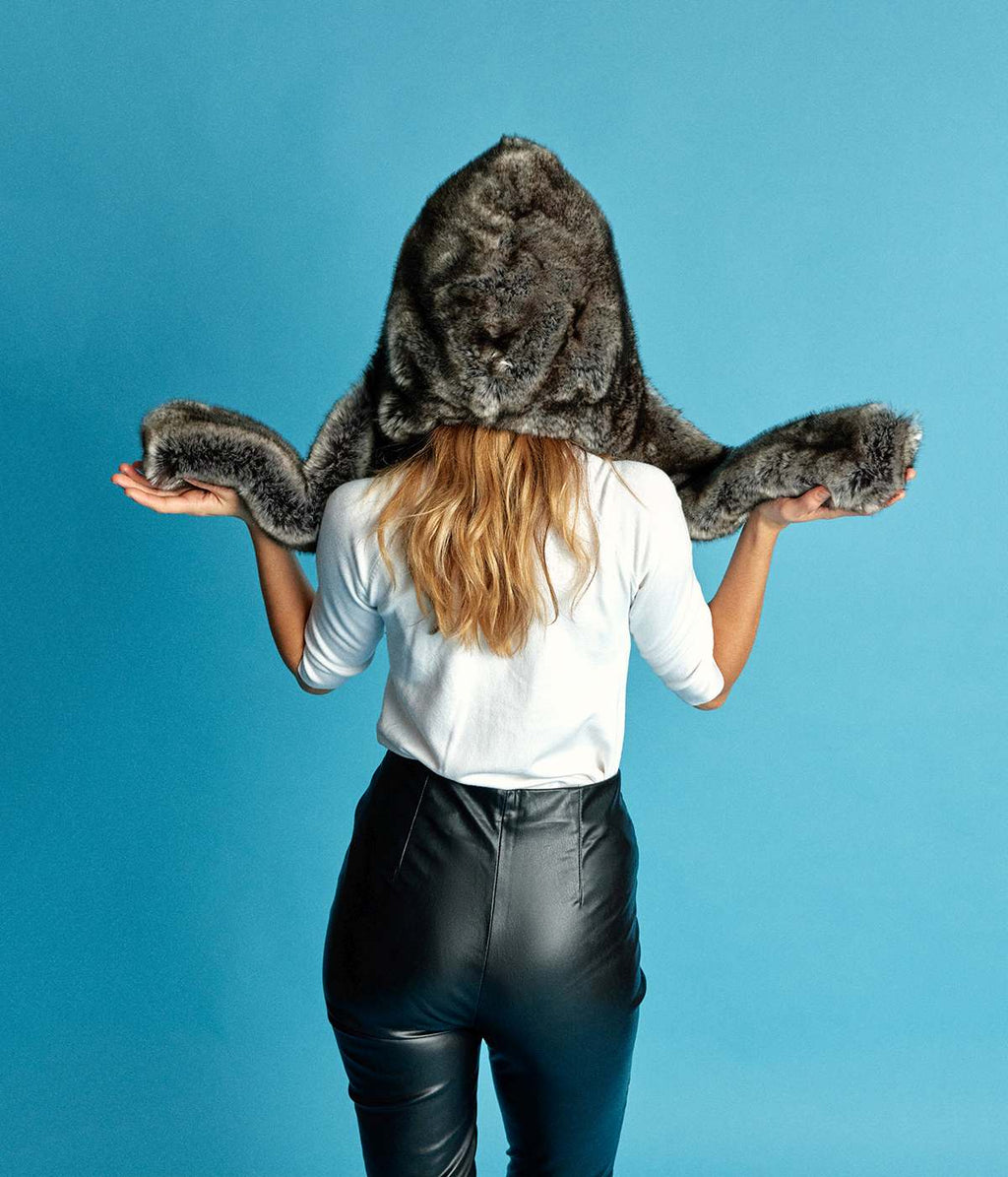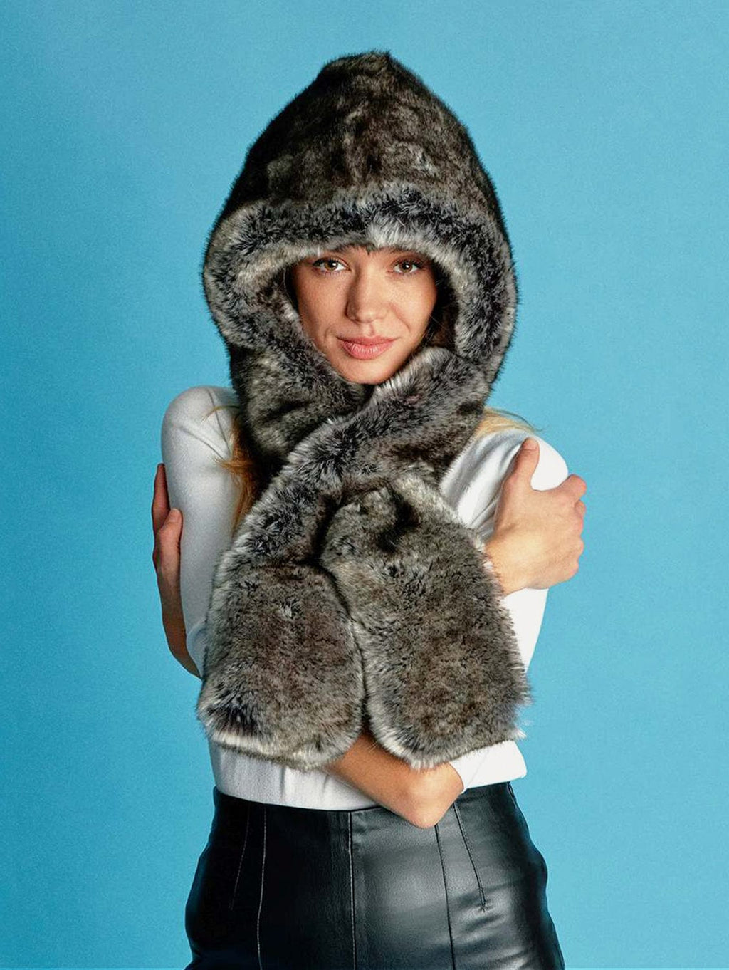Suzan Vegan Faux Fur Hooded Scarf | Silver Fox By ASHOKA Paris