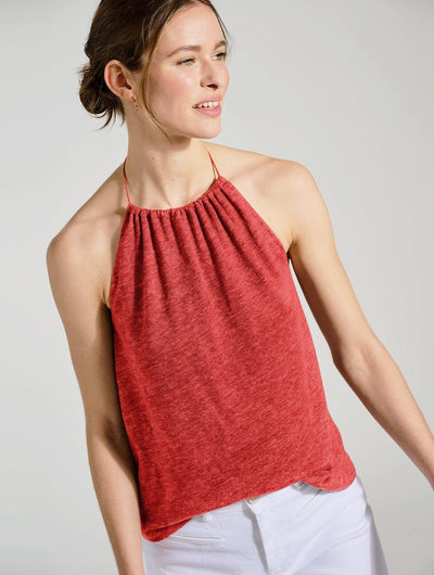 Flash bare shoulders and arms with a beautifully-cut halterneck. Crafted in a slubby linen and jersey blend, Aster is a joy to wear in hot weather with shorts or for a tonal outfit - our Candace skirt. The back is subtly elasticated in a self-tie style with gathering into the neck and a relaxed fit to help keep it in place.