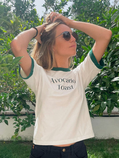 Inspired by the classic brunch favourite, this off-white tee with green avocado-like details brings a fresh twist to your wardrobe. For those who love their fashion as balanced as their diet.