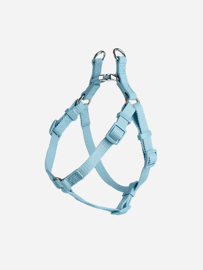 A combination of premium nylon fabrics and vegan leather, our light blue dog harness has been designed to provide pups with maximum comfort during their walks.