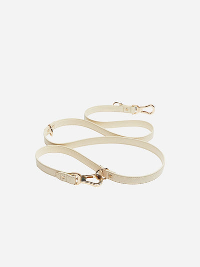 Made from luxury vegan leather, this double clip dog lead boasts off-white, cream shades and complementing gold hardware.