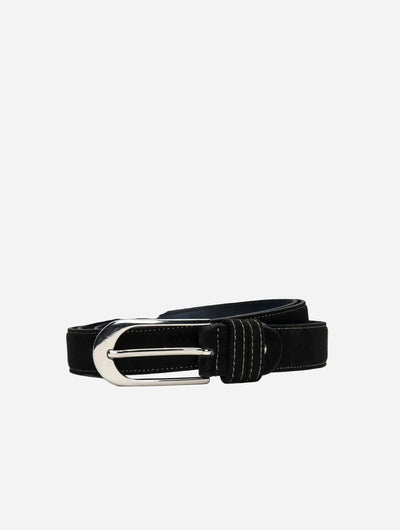 Discover Pera Black: a Women’s Vegan Belt featuring a nickel-free silver buckle, crafted from durable and eco-friendly microfibre.