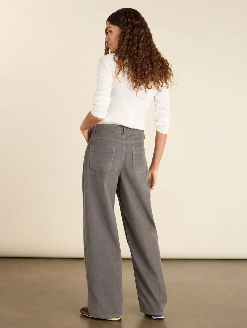 Take a break from jeans with our Bethany Trousers. This easy style in organic cotton corduroy offers texture, stretch and limitless styling potential. Cut into a wide-leg shape with classic, five‑pocket western detailing, they come in a mid-grey wash. Wear them with trainers and a sweatshirt on weekends or elevate them with a shirt and heels to feel smart.