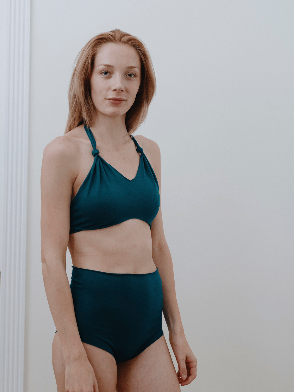 Evoke the snug and flattering fit of the garment, while emphasizing its comfort and style and capturing the  essence of sun-soaked days at the beach.