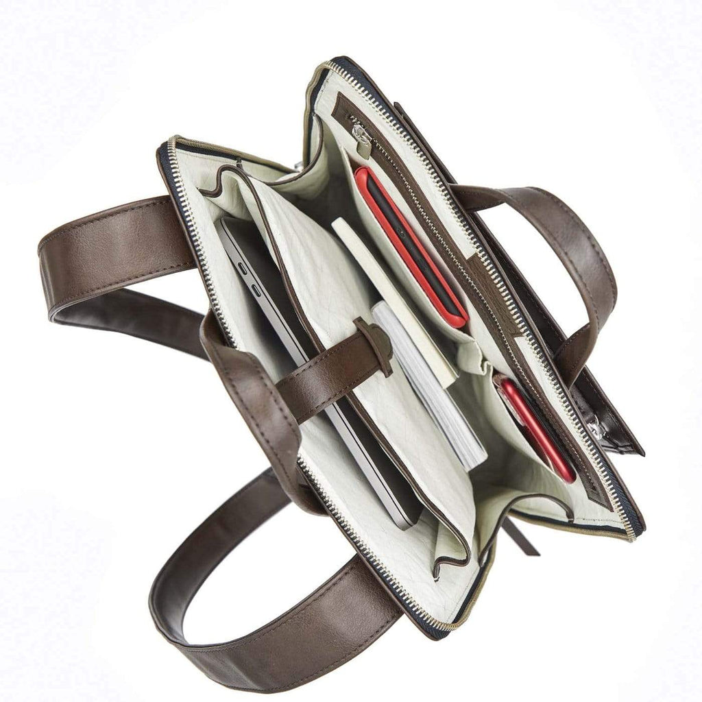 The bag can easily accommodate a laptop of up to 14”, and also features a multitude of interior pockets for business and personal accessories. The bag can be carried comfortably with an easy to reach front pocket.