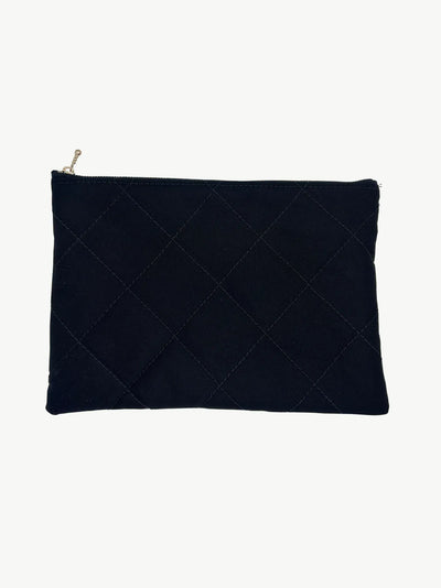 Meet the Black Quilted Pouch, your new go-to accessory that proves practicality and beauty can go hand in hand. Handcrafted in London from rescued black organic cotton, this rectangular quilted pouch is a perfect match to our black Michelle Dress and a shining example of circular fashion, turning unused fabric cut offs into something you’ll love and use daily.