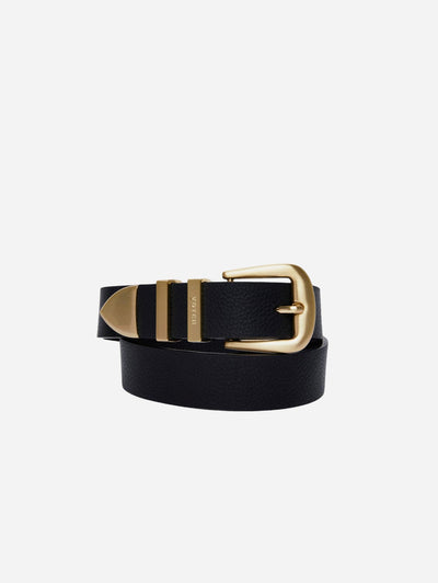 Sleek and striking, the Daisy Western Belt is a bold accessory crafted from bio-based bamboo leather. Designed to make a statement, it features a stunning brushed gold buckle, loops, and tip, adding a touch of sophistication to its timeless design.