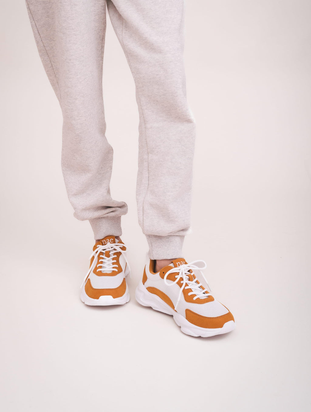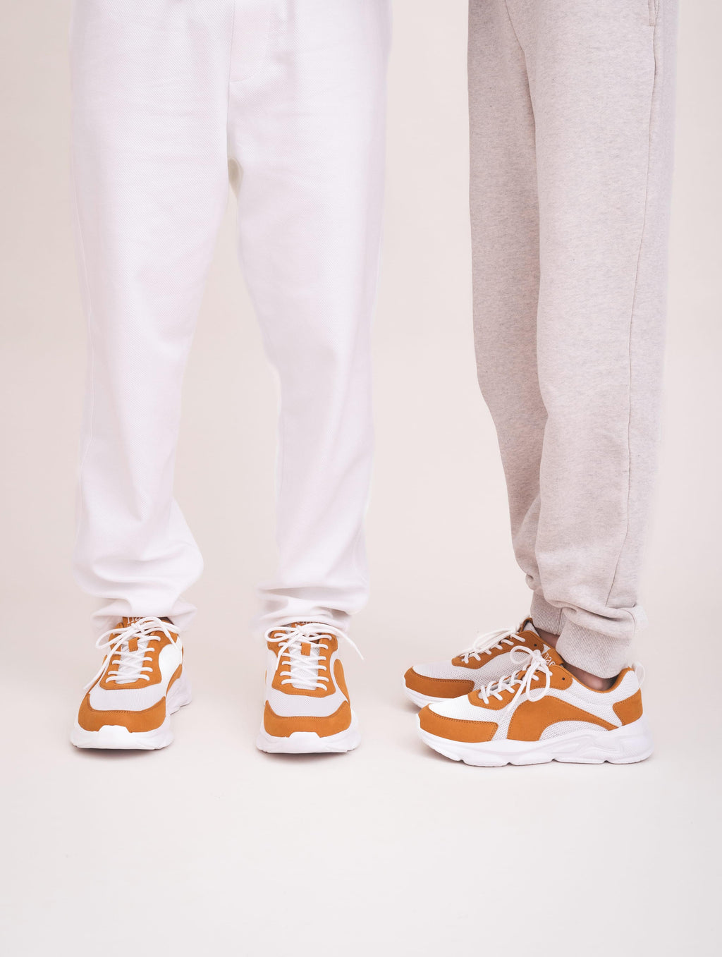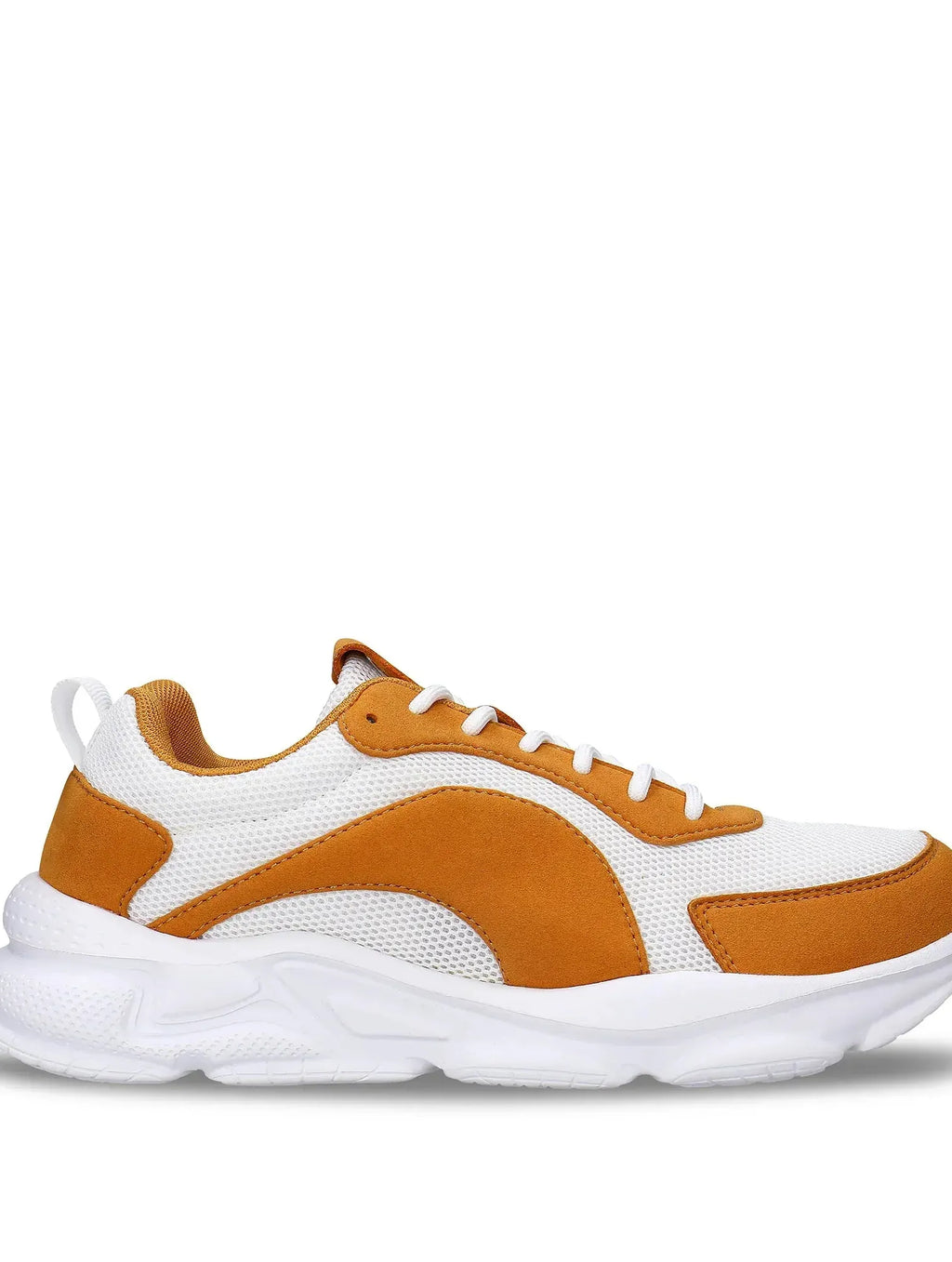 Unisex vegan sneakers made from breathable GRS-certified recycled PET mesh in a bright white base, complemented by warm toasted-yellow vegan microsuede overlays and matching branding details. Dan blends a sporty, running-inspired silhouette with lightweight athleisure comfort, offering soft cushioning and flexibility through its EVA sole. A warm, vibrant colourway designed for everyday movement.