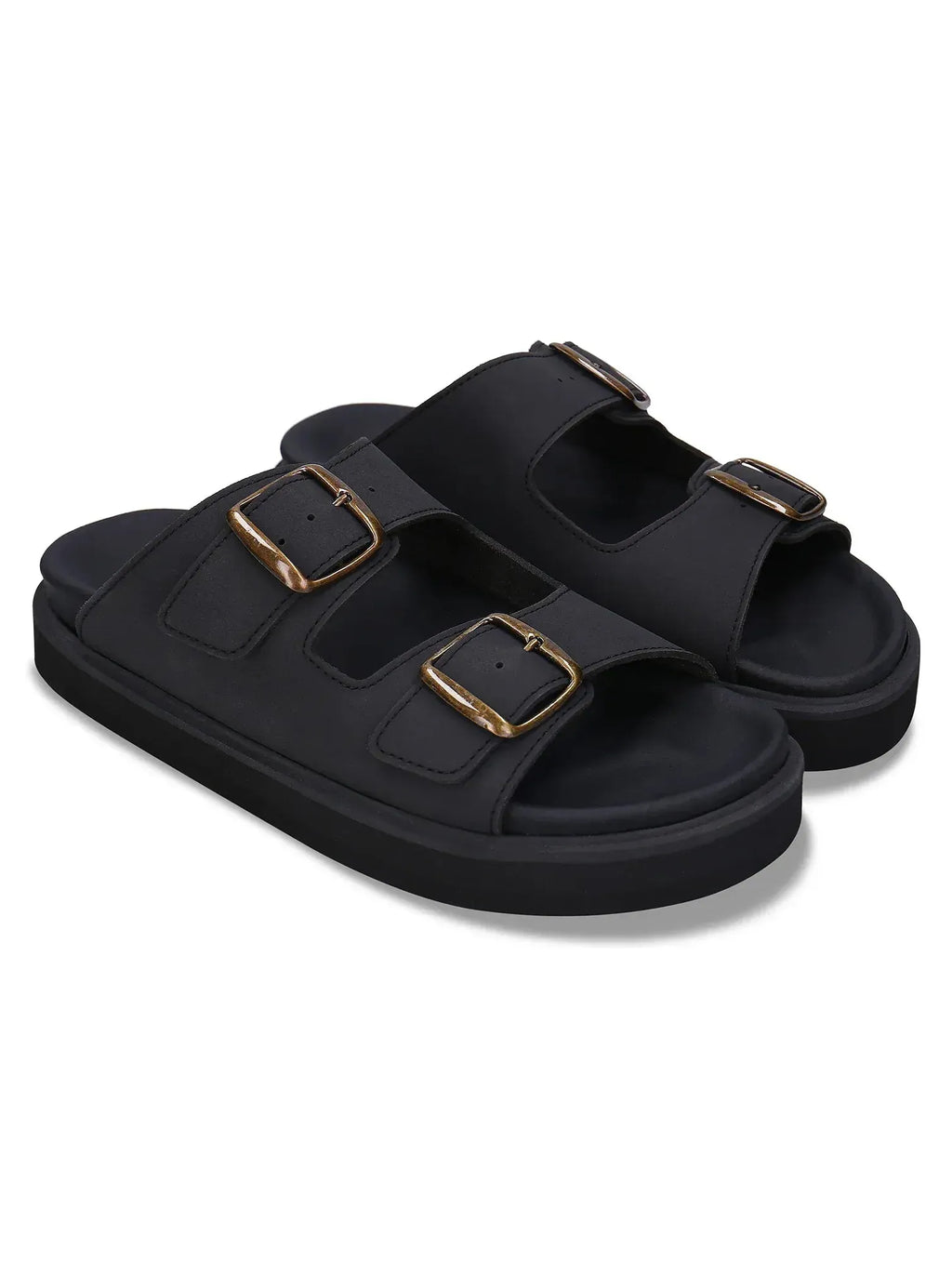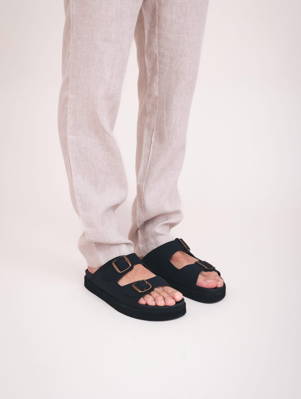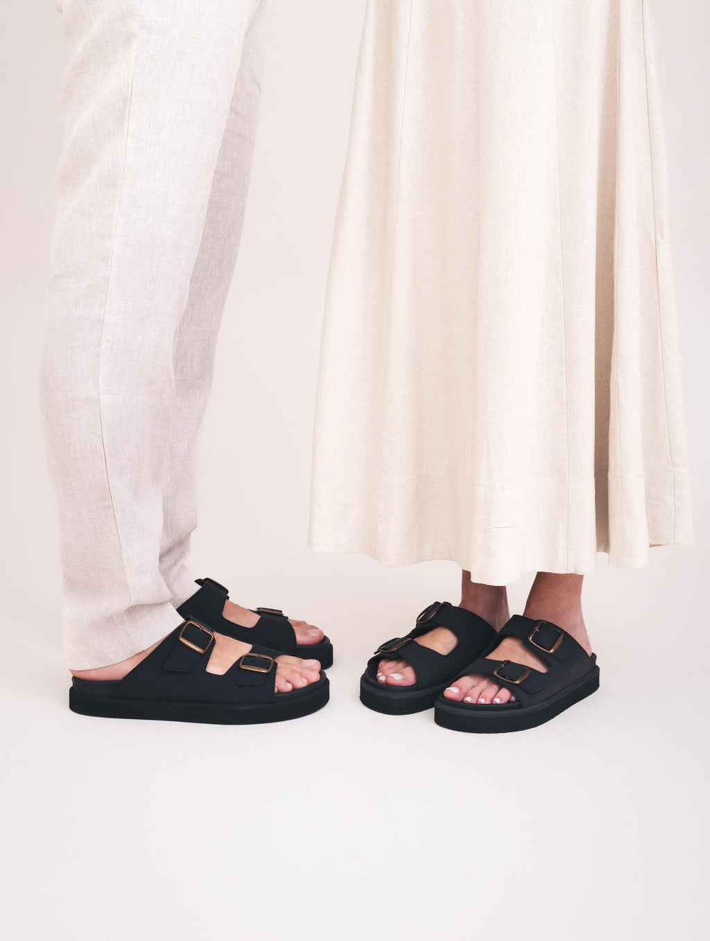Darku is a modern vegan platform sandal designed for everyday ease. Made in Spain with clean lines and adjustable buckles, it offers stability, comfort, and a bold yet minimal silhouette. A versatile summer essential crafted with durable vegan materials.