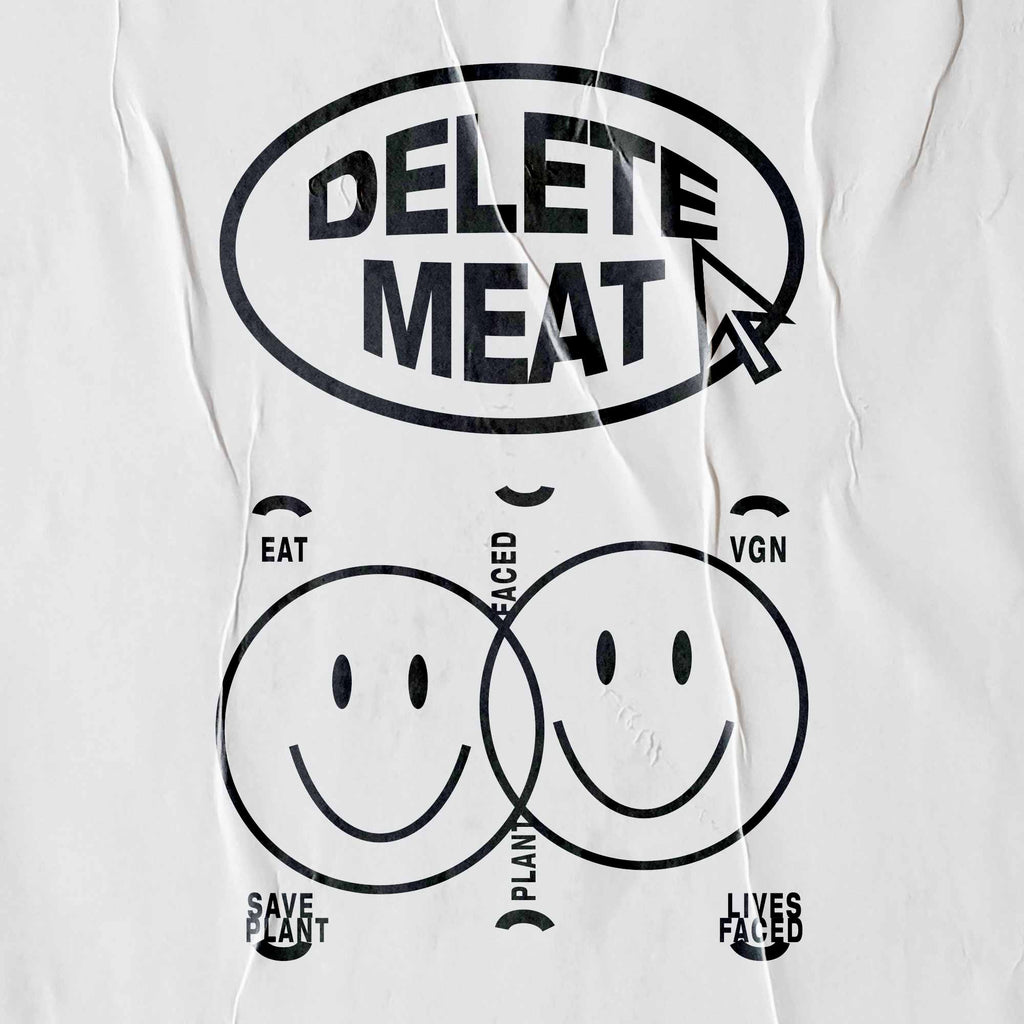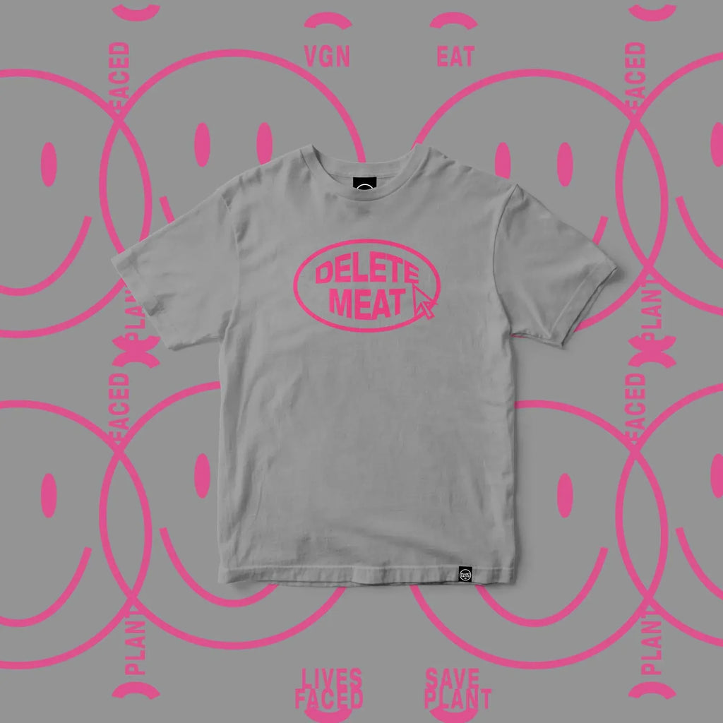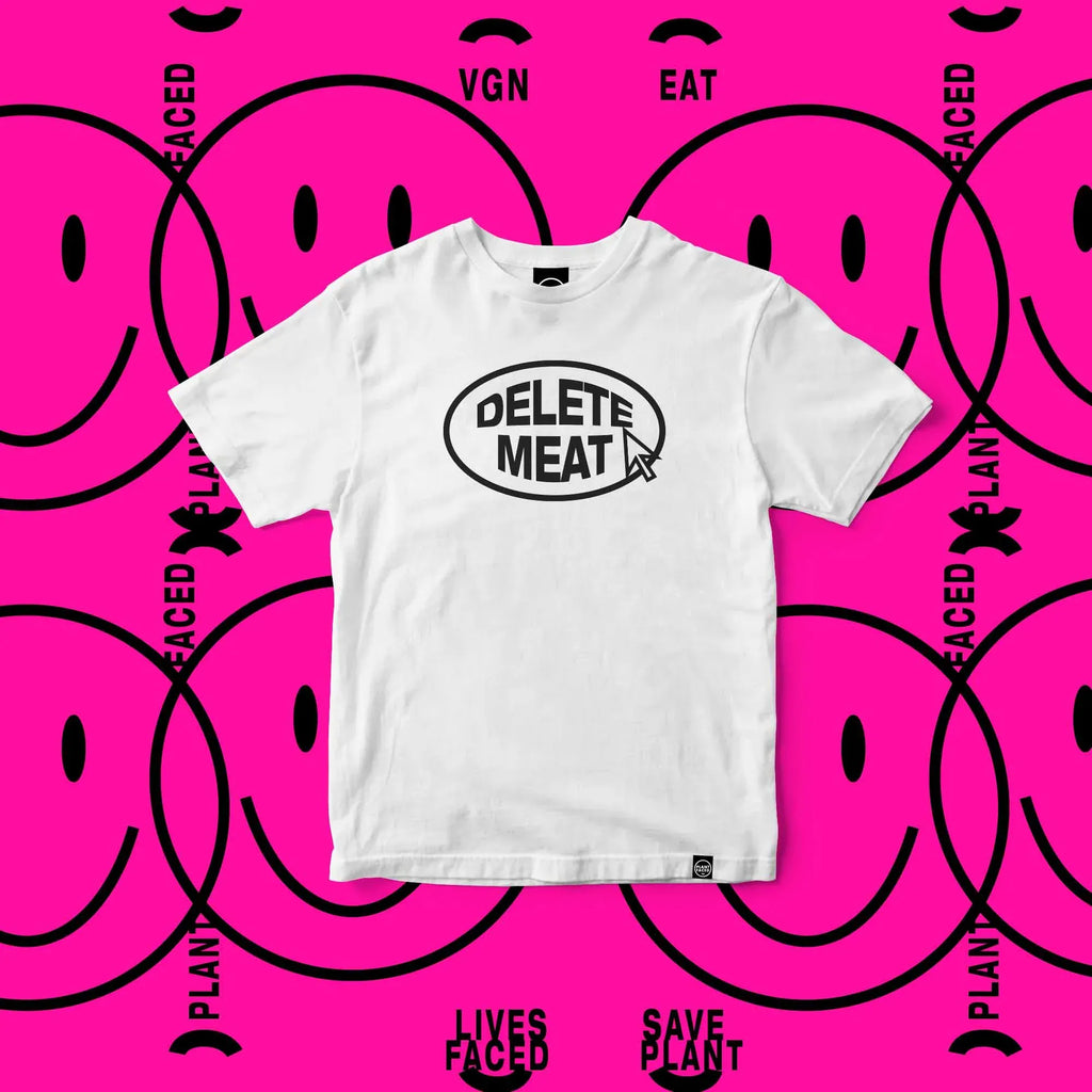 A punchy royal blue with bright pink tee featuring our pixel-click “DELETE MEAT” emblem on the front, backed up by a bold back print that says it all. This one's not for blending in - it’s for standing up (and speaking out) for the animals, the planet, and your plate.