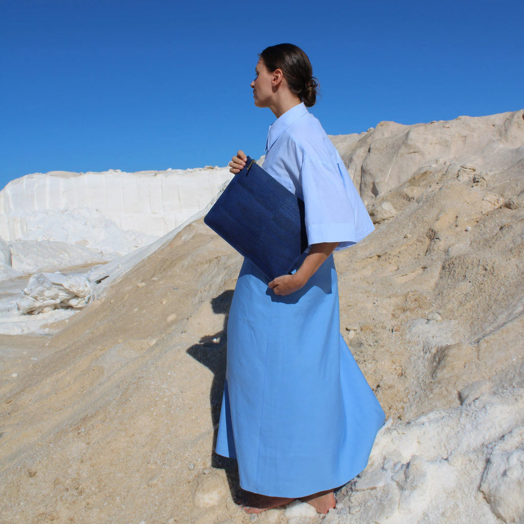 The Murmali Delta is a large clutch that will allow you to carry all your belongings for any kind of occasion, casual or formal. You can use it as a chic briefcase for your work or as a modern large clutch for a night out. It also features a detachable side cork band that allows the bag to be carried by the wrist.