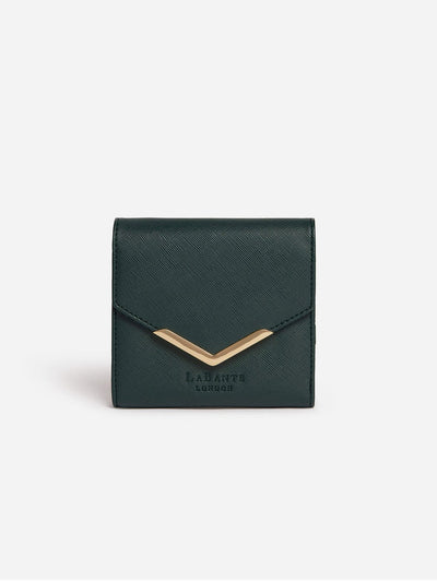 This classic wallet sculpts a slim and sophisticated silhouette with a squared body designed on vegan Saffiano leather texture. Features gold metal details and an embossed logo.