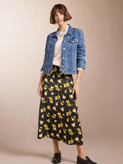 Slip skirts are enjoying a moment, and Doris is the easiest and most impactful style to update your wardrobe with. This pull-on style in recycled fibres comes in a simple column shape, and features hidden elastic in the back of the waistband for comfort. Its floral print on a black base offers a pop of pattern alongside slouchy jumpers, sporty bomber or denim jackets and cropped cardigans.