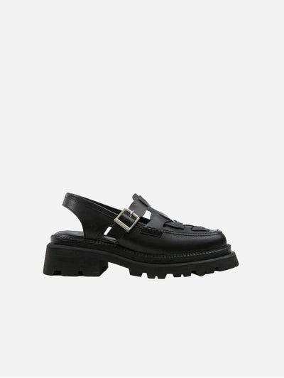 A bold twist to PREV's classic slingback t-bar moccasin sandals. Platform soles, slightly sharpened corners and a bolder buckle elevate the interwoven front detail and adjustable wavy straps for those who like bulkier builds. Features a cushion sole to ensure comfort on long walks.