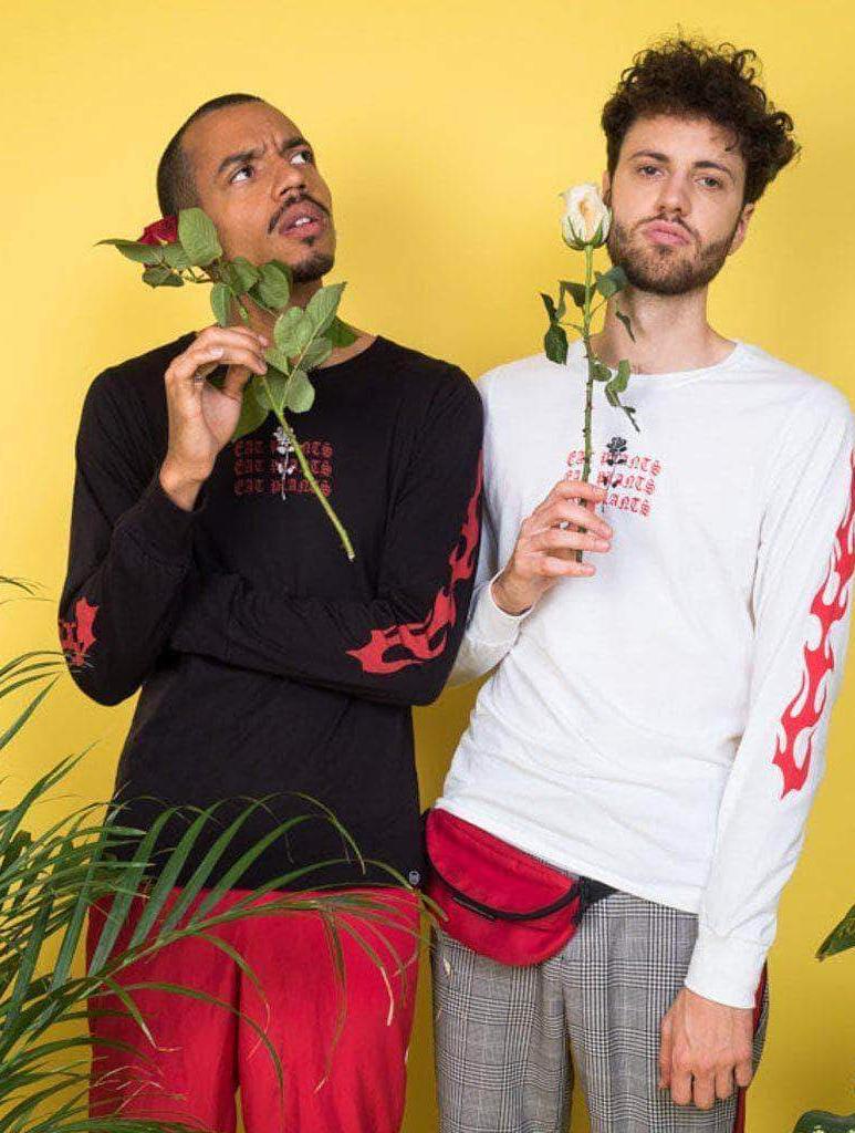 Stacked in red gothic script and pierced by a rose, with flaming sleeves, this hoody hits like your favourite old band merch - with a little more meaning.