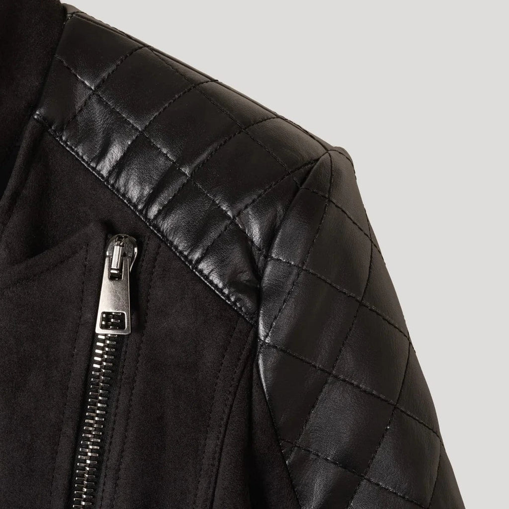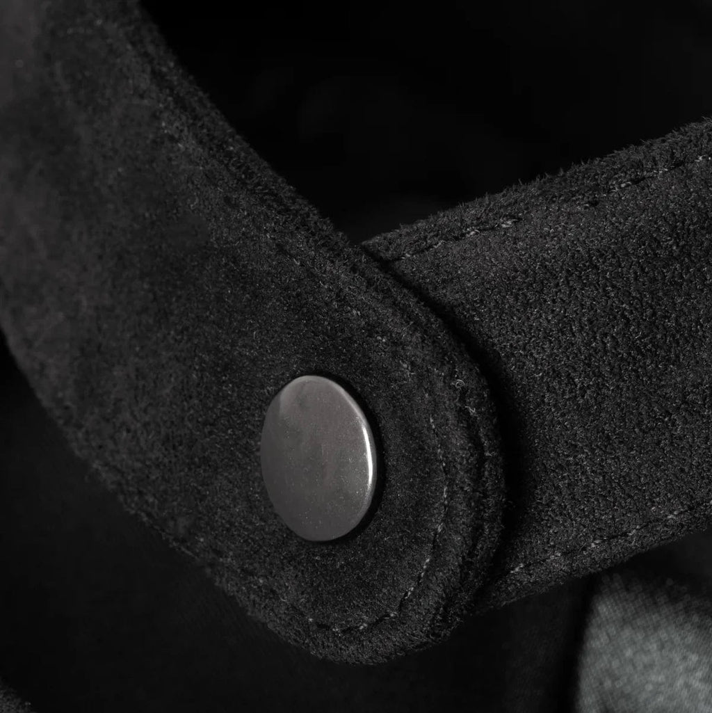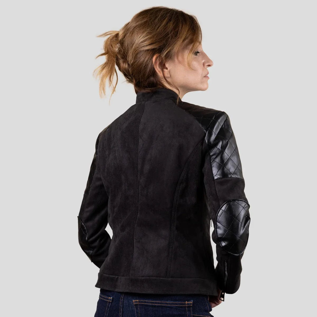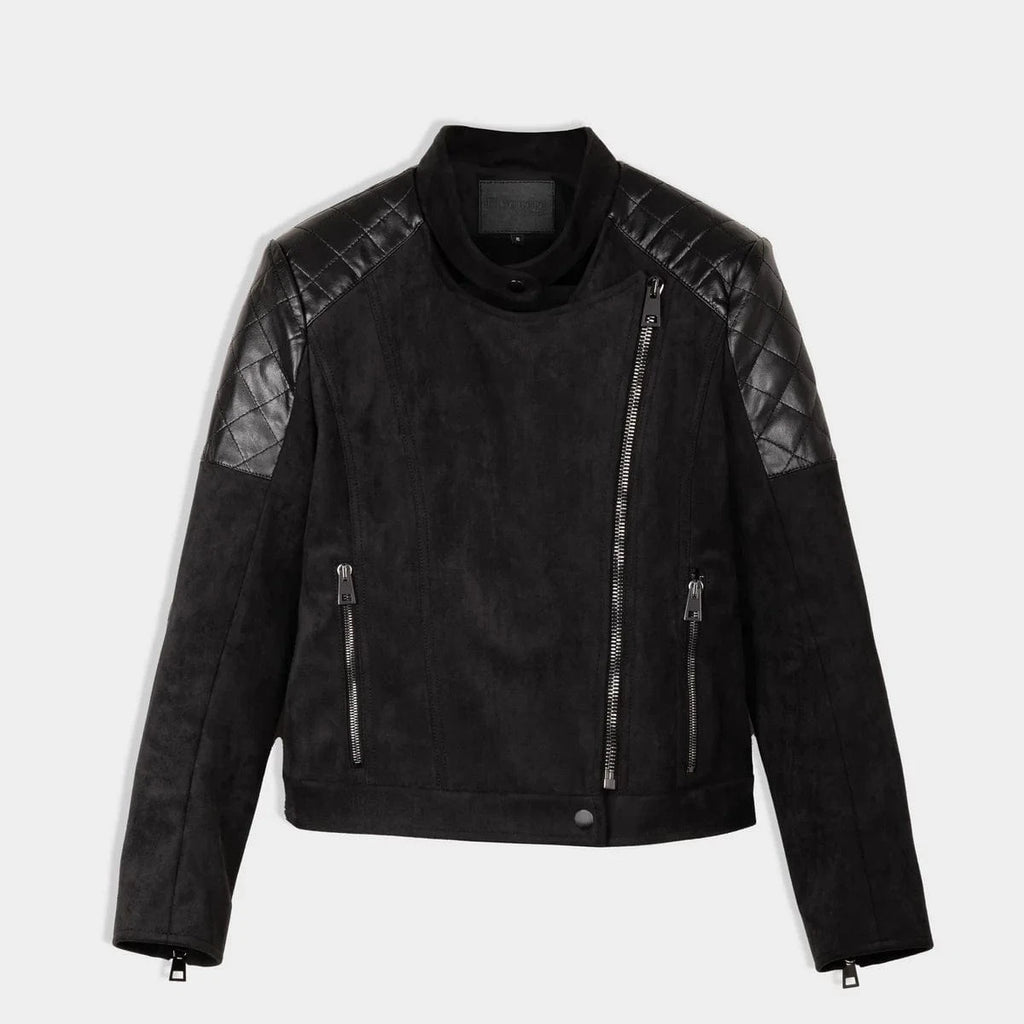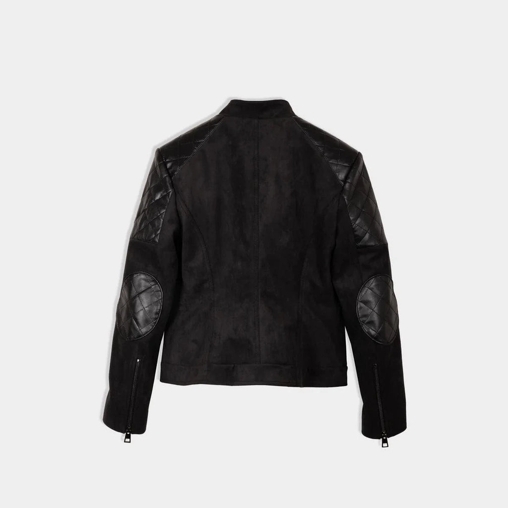 - Black, recycled suede alternative with AppleSkin™ patches on elbow and shoulder