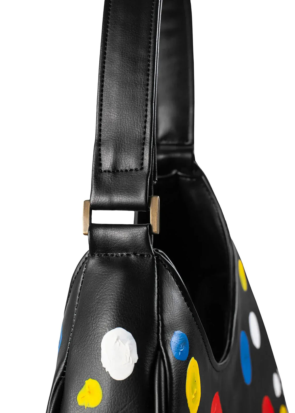 Inspired by the glamour of 1950s and 1960s Hollywood, the classic Audrey is crafted from plant-based corn leather, which looks and feels like animal hide, but is completely cruelty-free! Featuring Robert Kuta’s artistic touch of hand-painted colourful dots, you’re sure to find one like this nowhere else!