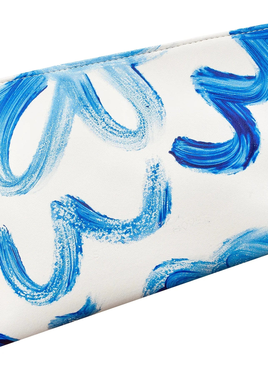 The asymmetrical baguette bag in cream white with hand-painted flowers—a unique design by Robert Kuta.