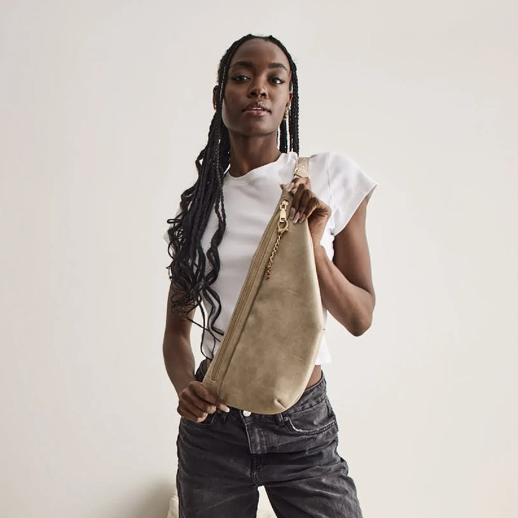 The EVE Crossbody Belt Bag in Sand is the ultimate hands-free essential. Designed in Canada and crafted from certified recycled materials, this vegan bag combines sporty ease with minimalist style.