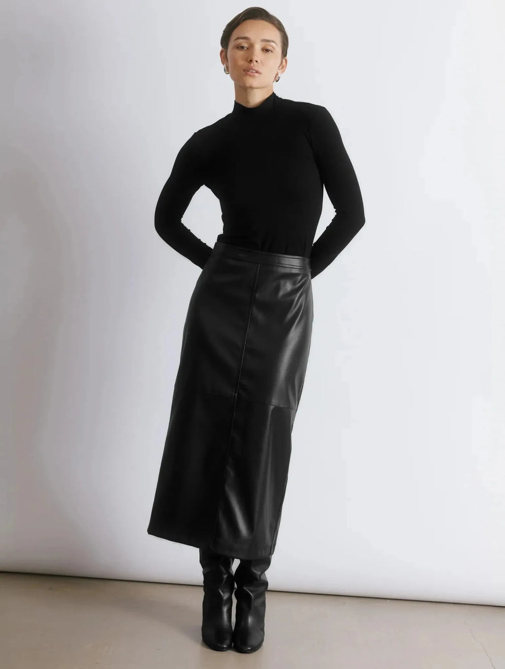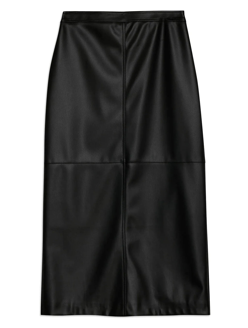 This black midi skirt features a sleek, straight pencil design that flatters your silhouette.