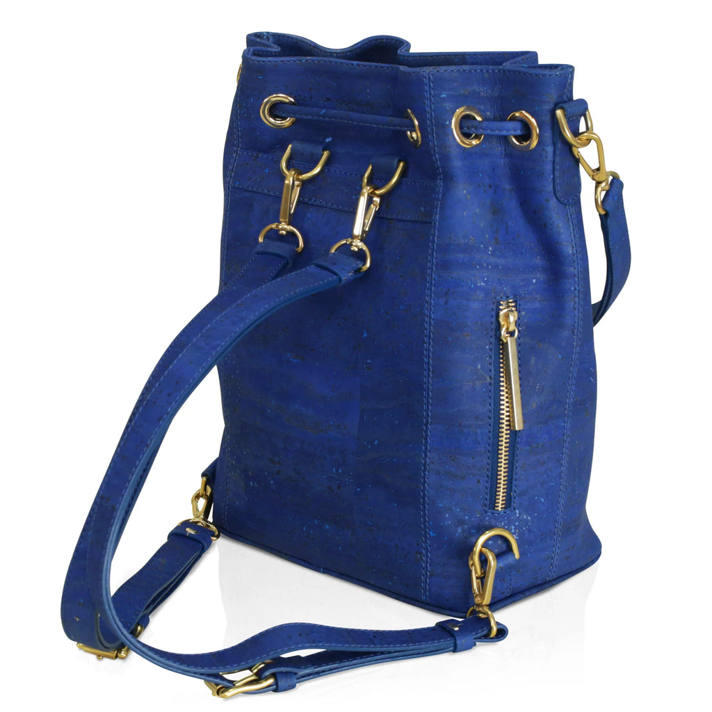 Gamma Handcrafted Cork Vegan Bucket Backpack | Navy By murmali
