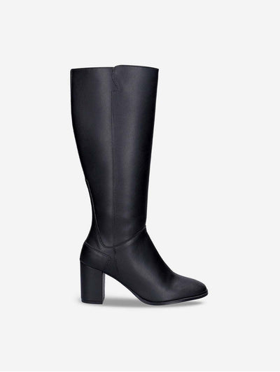Discover the elegance and comfort of the Greta Black high knee boots, perfect for those seeking a sophisticated style without compromising their ethical values. Featuring a modern square toe design and an 8 cm heel, these boots are made from premium non-leather microfiber, combining durability and environmental responsibility.