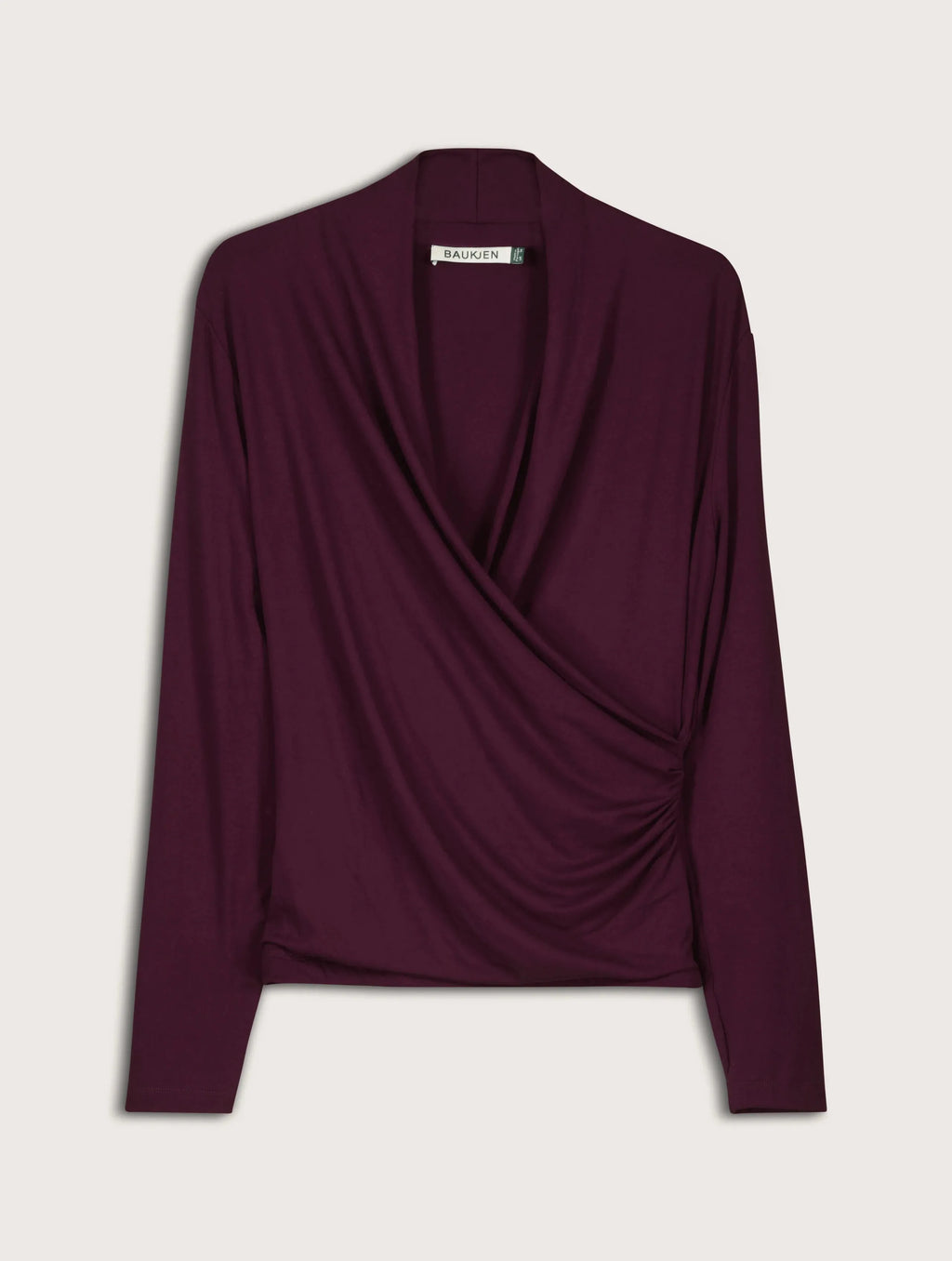 Easy, elevated and the ultimate in relaxed elegance, our Gylda top has been such a hit that we’ve created a version in plum. It simply pulls on and comes with a fixed wrap feature. Made from our signature soft jersey, it drapes beautifully around the neckline and body and is cut for a slim fit around the arms and waist.