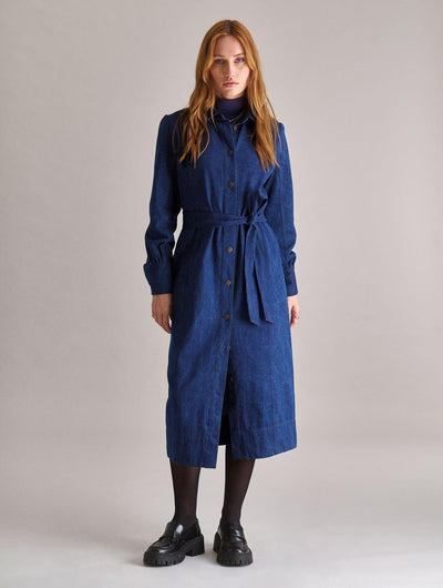 The HARITI Organic Denim Dress combines comfortable, regular fit design with sustainable style. Crafted from 100% organic cotton in a SEDEX audited factory, this mid-length dress features side pockets and branded metal shank buttons for subtle detail. Its dark denim hue offers versatile appeal while supporting vegan and ethical fashion choices. Perfect for everyday wear, it balances practicality and conscious craftsmanship effortlessly.