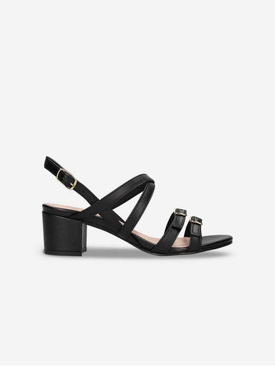 Introducing the elegant mid-heel vegan sandals, expertly crafted from luxurious black apple leather.