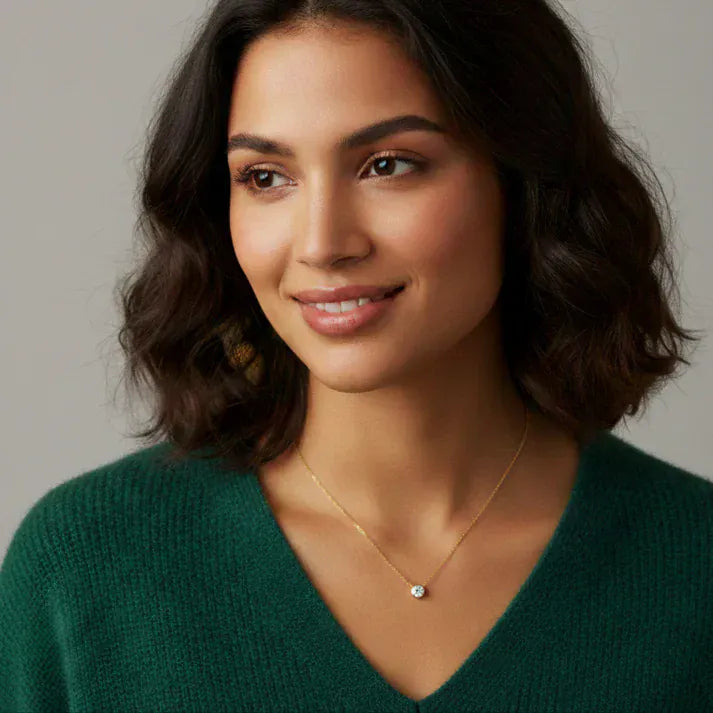 The diamond-cut cable chain reflects light to give the illusion of sparkle across the entire necklace.