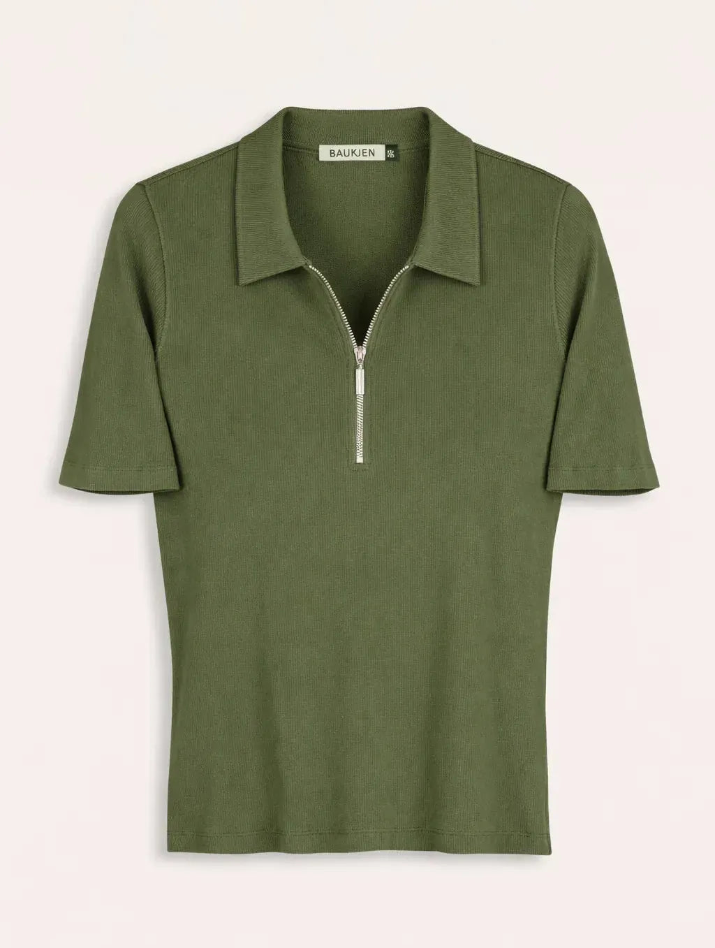 It’s no surprise that the Ivy Rib Collar Top has quickly become a bestseller. The neat collar, sleek zip and soft, organic cotton ribbed jersey ticks all the boxes. This new khaki shade works with tailored trousers for the office and dressed-down with jeans for weekends. If you haven’t tried one yet, prepare to be converted… and start building up a collection of colours.