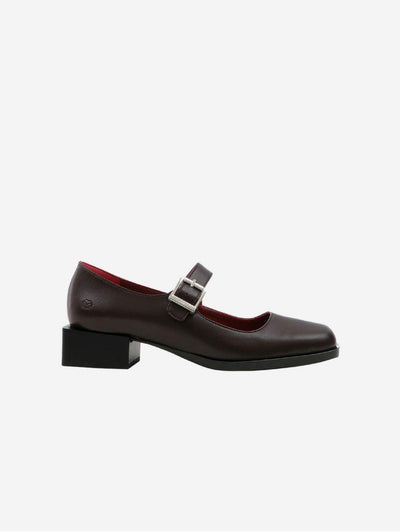 The classic Mary Janes with an edgy twist. The pin-buckle signed by Prev, toe cap and the block heel feature a geometric design that is the signature of Prev.