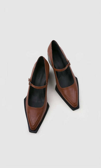 Pointed toe, ridged sole, western heel and a thin elegant buckle strap moulded in elegance and style. Gives a secret message with the V-shaped saddler detail sewn with skilful craftspeople ship on the front.