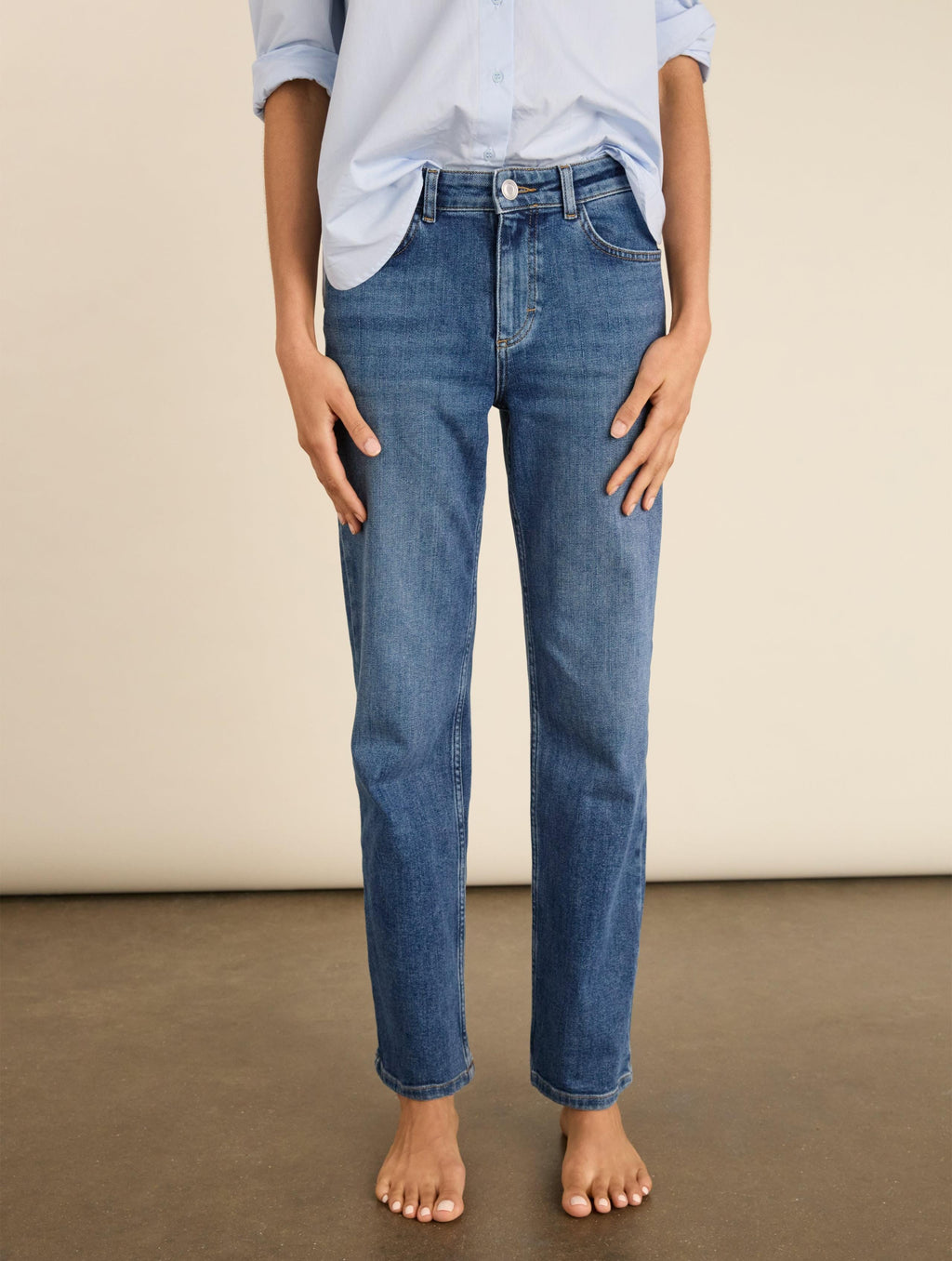 Every jean collection needs a classic, so we have created it... The Kim are a simple, no-nonsense style. Cut for a slim fit with a full-length, straight leg shape in washed indigo, they’re unapologetically essential. Cut to skim the waist and bottom with a high-rise fit, they’re crafted in organic cotton denim with just the right amount of stretch. Versatile, easy and comfortable, they’re set to be your new go-to.