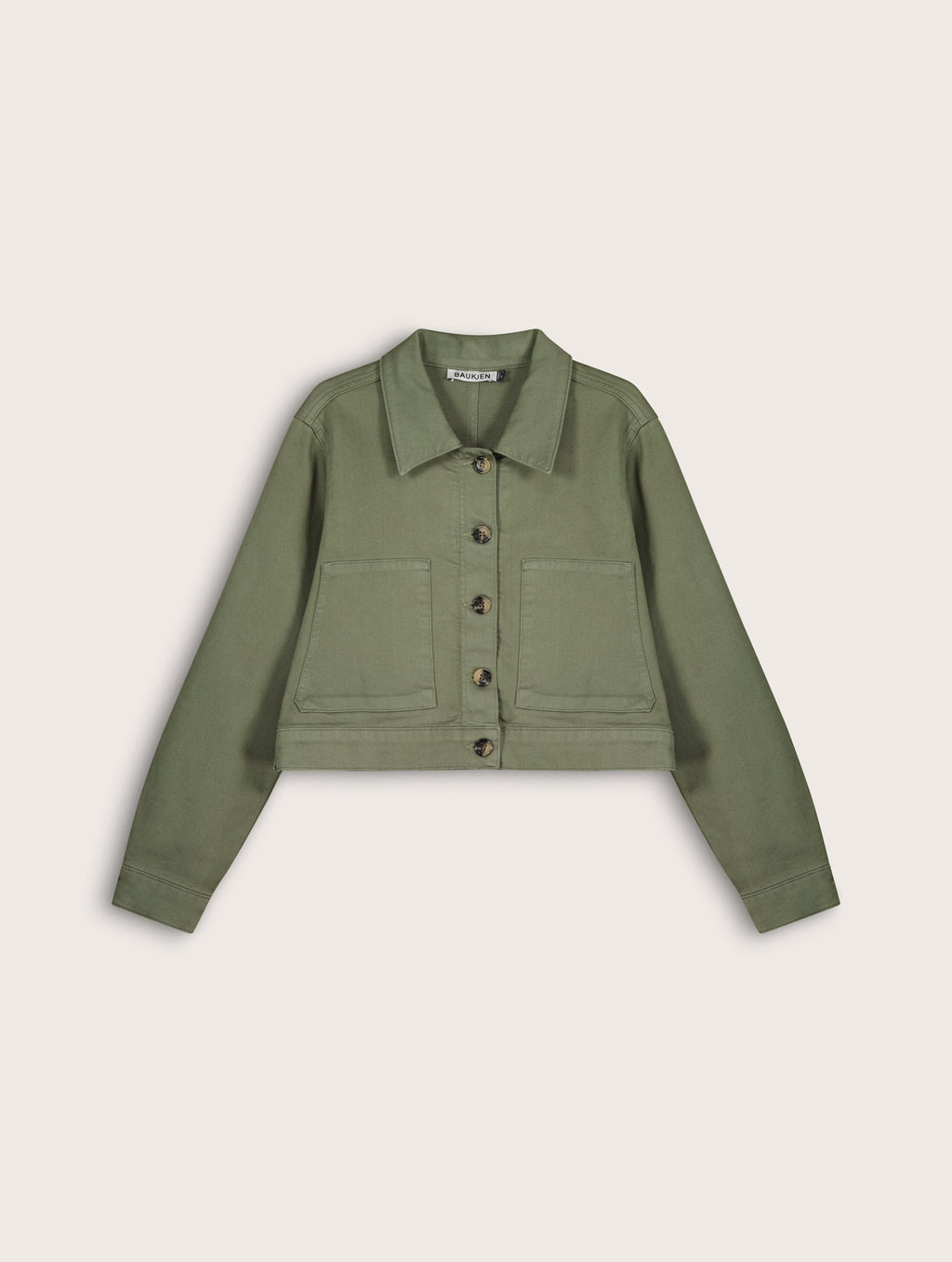 In khaki organic cotton denim, Kristi is the casual jacket which works with everything. A perfect layer for transitional weather, we love it thrown over our Briar cardigan in zesty chartreuse for a playful colour pop or simply an easy update to jeans. Inspired by a classic jeans jacket but cut for a shorter length, it features large pockets and mock-horn buttons for a contemporary twist.