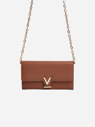 The purse features a brushed gold V magnetic closure, adding a sophisticated touch, while the removable chain offers versatility—wear it as a crossbody during the day or carry it as a sleek clutch for evening occasions.