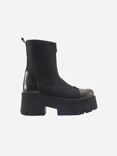 Bray Boots from Prologue Shoes by Forever & Always Shoes offer an expertly crafted balance of contemporary edge and everyday resilience. Crafted from high-quality faux leather and scuba fabric, these boots feature a streamlined silhouette with a robust lug sole and a stable 5 cm (approximately 1.97 inches) block platform heel, delivering bold elevation with comfort.