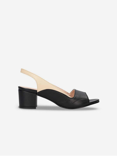 These sandals feature a chic open-toe design, perfect for warm-weather outings. With a sleek strap at the back in a sophisticated nude color and a contrasting black strap at the front, they offer a versatile and modern aesthetic. Elevate your look with these vegan sandals, thoughtfully designed and crafted with sustainability in mind. Step into ethical fashion with confidence and style.