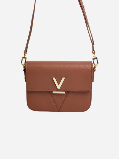 The Margot is as versatile as it is elegant, featuring two interchangeable straps—one for shoulder wear and another for crossbody styling. Its thoughtful design includes a brushed gold V metal hardware lock for a bold, polished look, while the flap-over silhouette adds an effortless touch of sophistication.