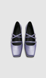 The combination of classic design, contemporary approach, and comfort. A modern take on the timeless ballet flats with rectangular shapes and three straps that can be tied crossed or straight. The asymmetrical stitching detail on the back is specially designed to increase comfort.