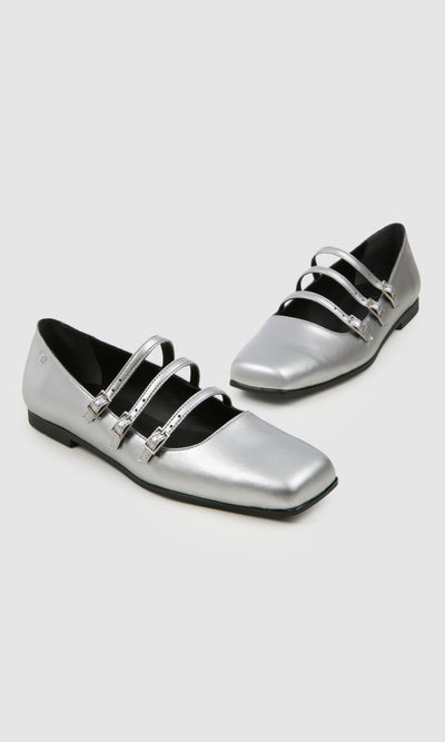 The combination of classic design, contemporary approach, and comfort. A modern take on the timeless ballet flats with rectangular shapes and three straps that can be tied crossed or straight. The asymmetrical stitching detail on the back is specially designed to increase comfort.