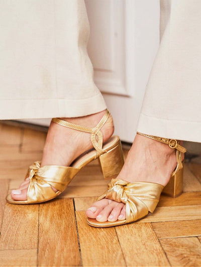 A big bow on the front of the foot, a small comfortable heel, a thin strap delicately worked on the ankle... A chic and original model!