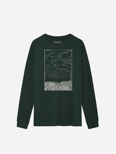 Elevate your wardrobe with the premium weight Migration Tee. Crafted from high-quality, eco-friendly cotton, this tee offers superior comfort and durability. The eye-catching graphic design adds a stylish touch, making it a standout piece for any outfit. Perfect for layering or wearing on its own, this long sleeve tee combines sustainability with premium style. Choose a tee that looks good, feels good, and does good for the planet.