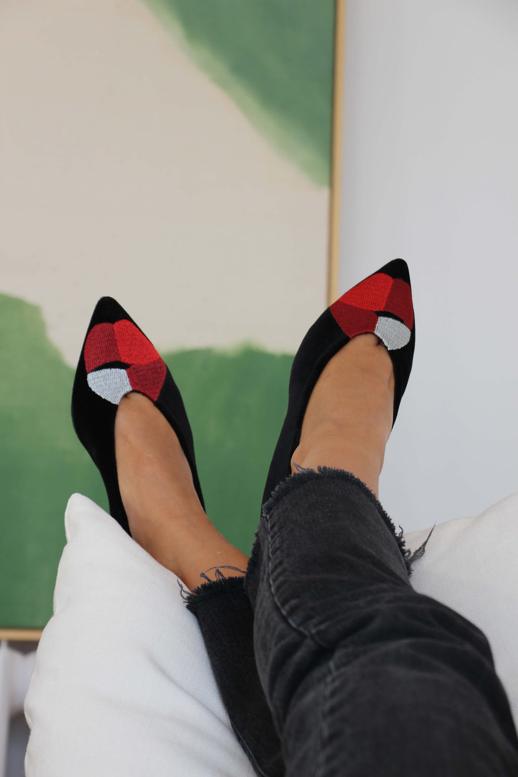 Fun embroidery on velvet. Vegan, sustainable, comfortable, and original! What more could you want? Original and feminine ballerinas, perfect to brighten up your day.