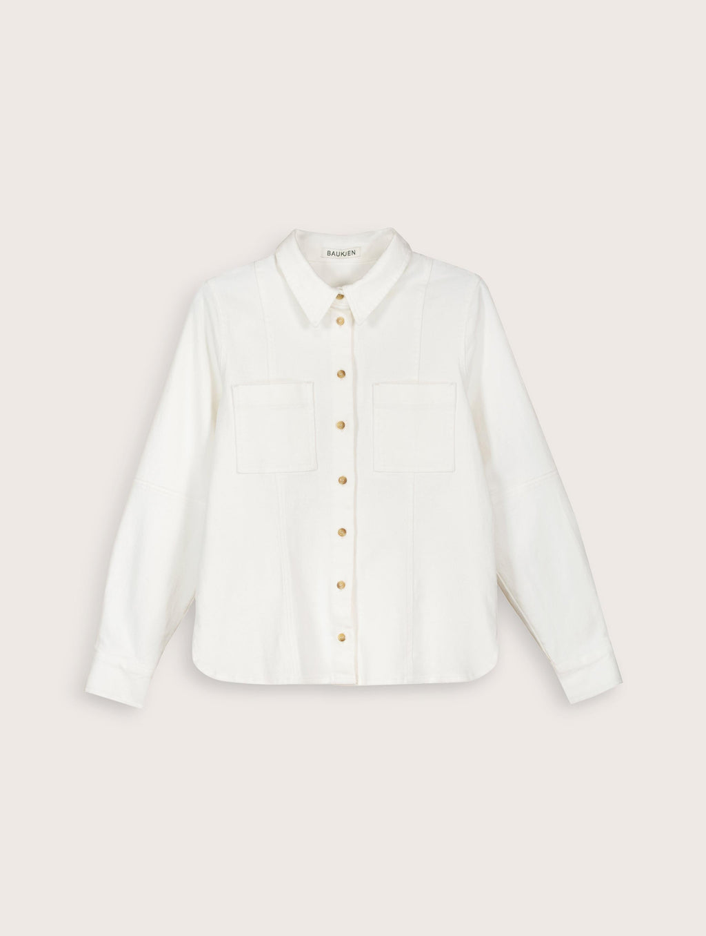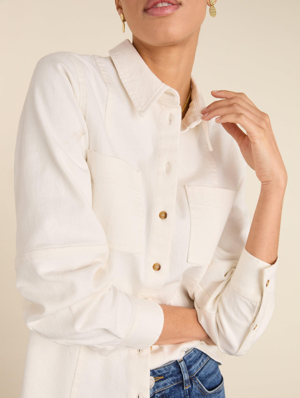 We bet you don’t have anything like the Mona Organic Denim Shirt hanging in your wardrobe already! This cool style works as both a button-down shirt or left open over a vest or tee as a light jacket. Crafted in heavyweight, organic denim cotton with just the right amount of stretch, it features seaming details down the front of each sleeve. Topped with a pair of patch pockets, this shade of soft white goes with everything.