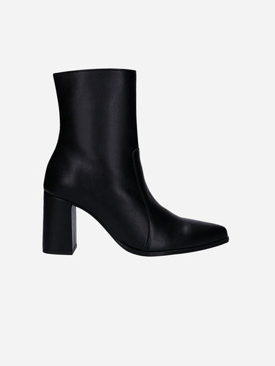 Lydia Black: Heeled ankle boots with pointed toe and zipper crafted from apple leather Shop online Lydia, the women's ankle boots made with Apple Leather, material made from the recycling of the residues provenient from the industrial production of apple juice, a sustainable and cruelty-free innovative alternative to leather.